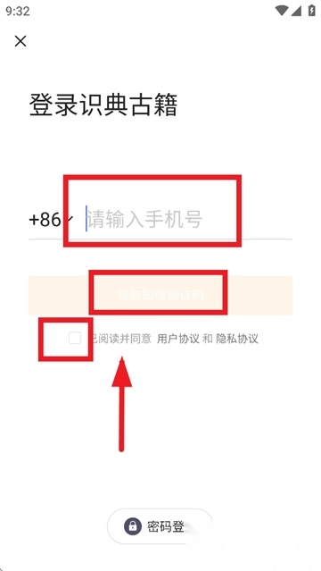 请输入有效的手机号码,勾选相关协议条款后点击获取验证码;验证码验证通过后,系统将自动完成注册与登录的流程。
