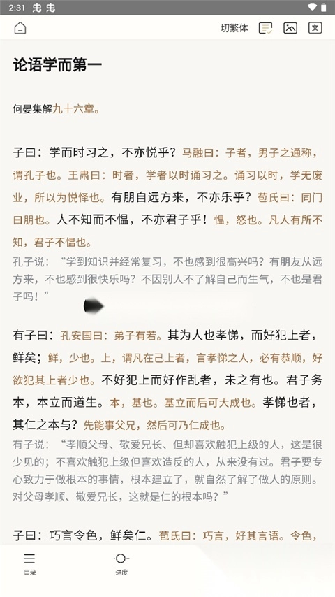 2. 智能阅读辅助功能:具备原图对照模式,繁简字体可随心切换;针对关键语句设有注疏解析,疑难字词则附有专业释义。