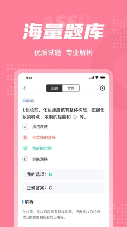 该题库严格依据国家职业资格标准进行编制,涵盖了从初级到高级化妆师的所有考核内容。题库按照面部结构分析、色彩搭配原理、造型设计等不同模块来划分类别,每一道题目都配备了专业的解析视频;而实时更新的模拟考试系统则可以精准预测考试成绩,助力考生找出自身知识漏洞并进行补充完善。