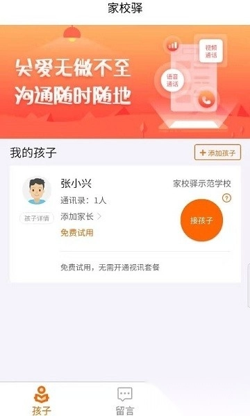 家校驿是一款聚焦家校互动场景的视频通讯工具。在校学生能借助专用设备和家长开展视频通话、语音聊天,或是发送短视频消息;这样既可以满足学生与家长日常联络的需要,又能切实解决学生带手机进校园产生的管理难题。