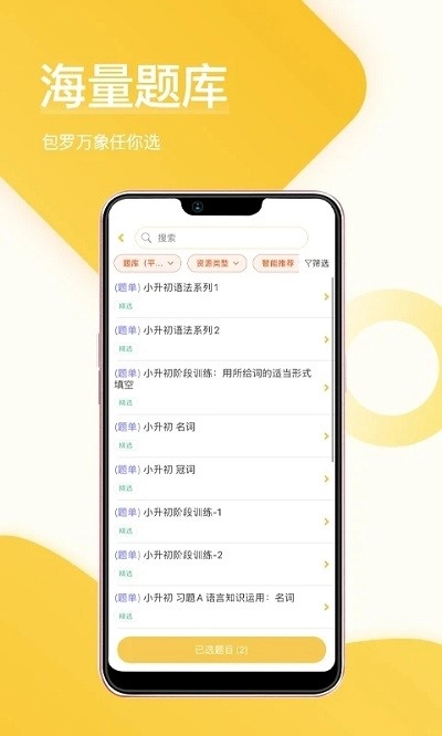 2、教材同步题库:依据教学进度与对应教材章节相匹配,可快速筛选出合适的题目添加至作业中;