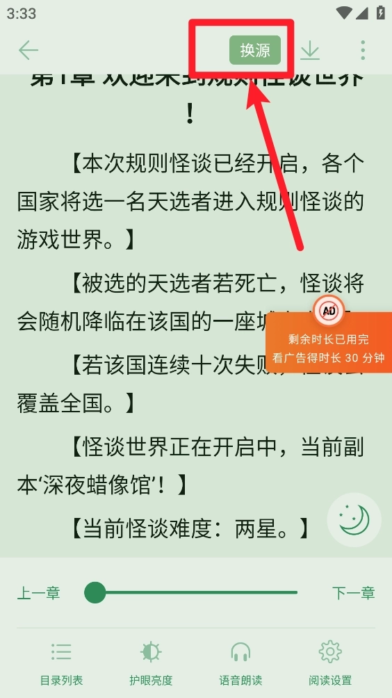 2、在书城中挑选任意一本你感兴趣的小说资源,进入阅读页面后调出菜单。