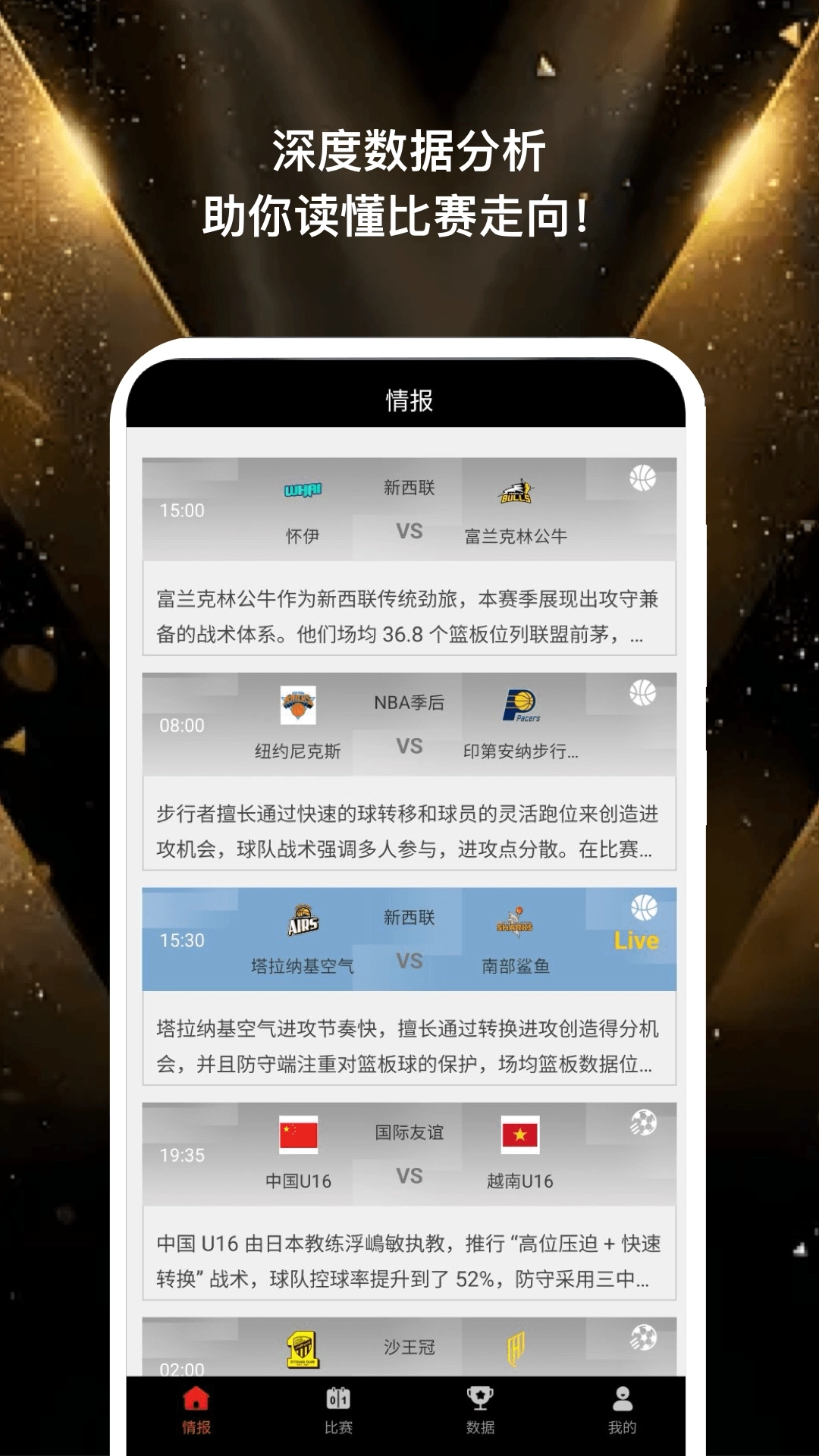 这是一款面向足球与篮球爱好者的赛事信息聚合平台,聚焦全球主流联赛与杯赛,为用户呈现权威、精准的赛程规划、实时赛况及深度数据统计。平台覆盖五大联赛、欧冠、NBA、CBA等上百项赛事,实时同步比赛进程、比分变动、红黄牌记录、得分明细、球队战绩、球员技术统计等关键信息。从赛前前瞻分析、赛中数据动态更新到赛后复盘总结,全方位满足用户需求。“我的”专区支持赛事关注功能,通过智能算法推送个性化赛程提醒与数据报告,构建专属的赛事追踪空间。界面设计简约直观,操作流程便捷高效,是足球篮球迷不可或缺的随身赛程数据助手。平台始终专注于数据的专业性与比分的精准度,助力用户洞察赛场每一个精彩瞬间。