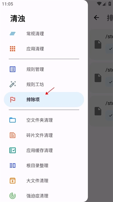5、然后选项排除的文件即可。