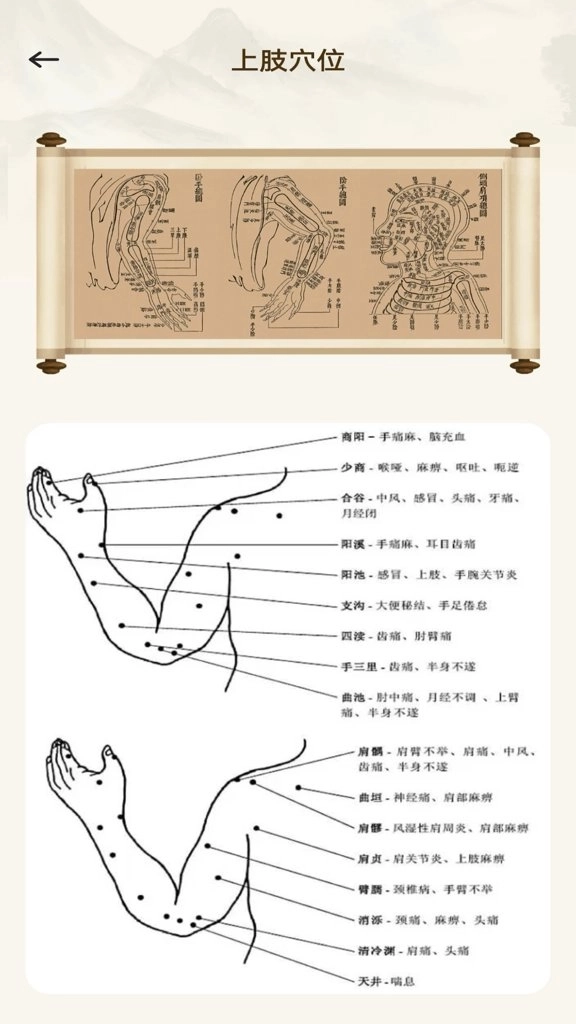 3、由基础穴位延伸至药材、食疗,构建起完整的中医养生知识体系。