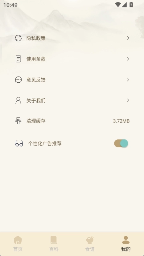 4、首页、百科、食谱、我的这四大模块,功能划分清晰明了,便于用户快速进行切换操作。