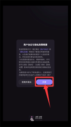 1、请先阅读并确认用户协议与隐私政策摘要,随后点击同意以进入应用程序。