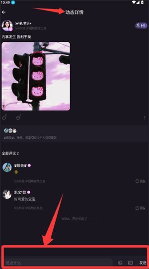 3、编辑动态详情页底部输入框里的内容,来发表评论和参与互动。