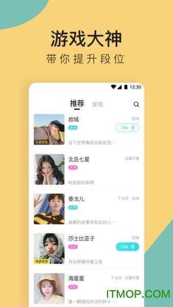 自主搜索匹配功能:支持通过关键词精准查找,能帮你快速找到擅长你所关注的热门游戏(像王者荣耀、和平精英这类)的高段位高手,还可以依据技术特点、语音偏好、可约时间等多个维度进行筛选。