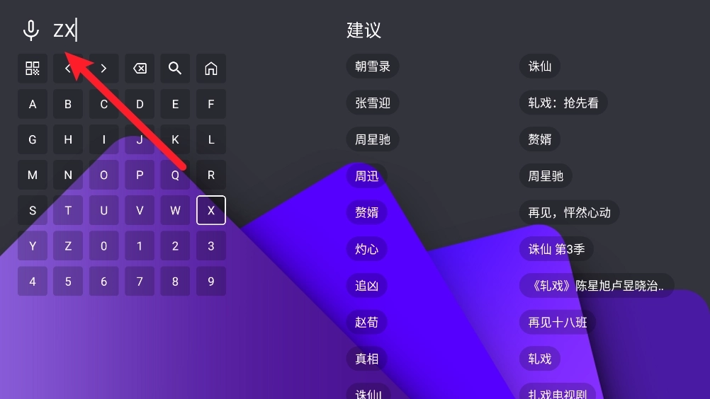 2、在搜索框中输入首字母进行搜索所需观看的资源。