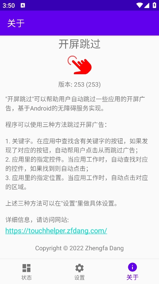 4、在相关界面中,能够了解开屏跳过功能,还可以访问网站。
