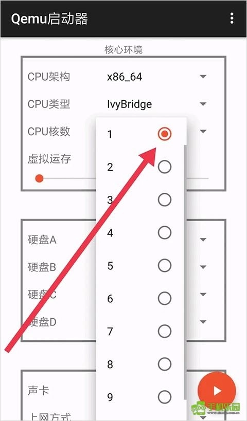 5、接下来是CPU核心的设置,需要注意的是这里无法真正实现多线程功能,因此若调得过多反而可能导致效果变差,所以保留一个核心即可。