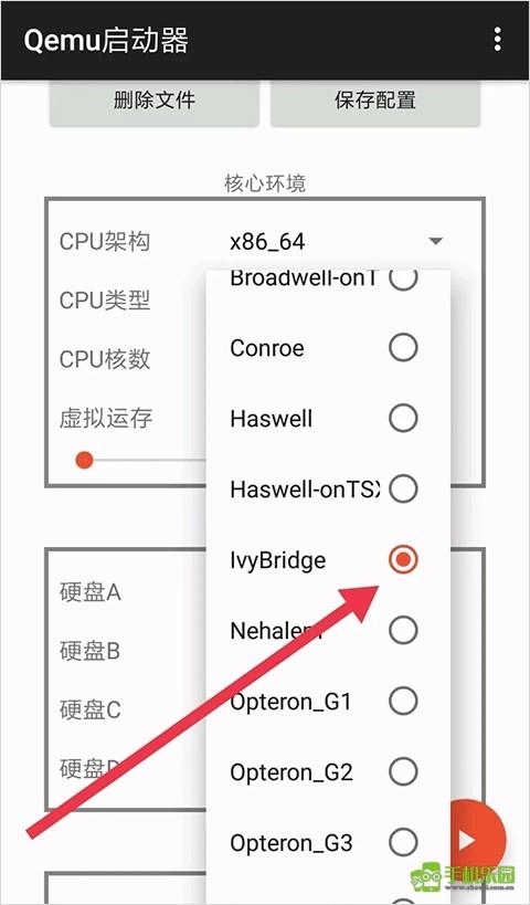 4、接着挑选一款CPU型号,在此我建议选用lvyBridge;