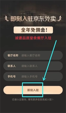 3、进入商家入驻页面,填写您的相关信息,点击【即刻入驻】按钮,之后等待审核就可以了。