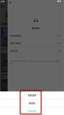 2、设置在线听歌的品质。