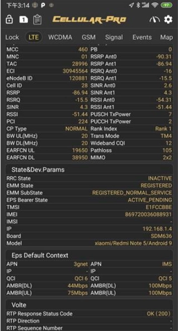 CellularPro是一款专业度拉满的网络服务检测软件,它是专门为网络优化工程师打造的,里面包含了大量专业内容,功能更是强大到没话说!不管你是想锁网还是锁频段,用它都能轻松搞定,而且软件还提供LTE视图、Signal视图等参数展示,数据全面又详实,整体给人的感觉就两个字——专业!