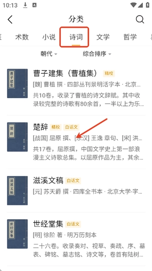 3.例如,你可以借助诗词分类的方式,去浏览那些你想要查看的诗词典籍。