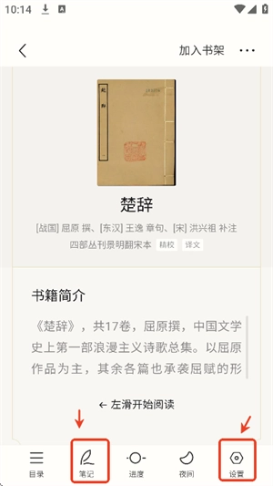 4.进入详情界面后,在阅读过程中还能记录笔记以及调整阅读设置。
