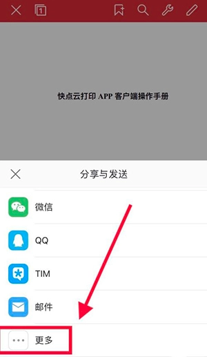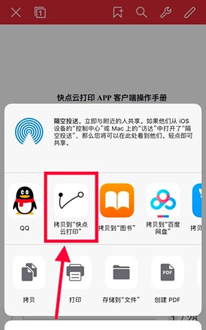 安卓设备上操作分享功能时,找到以PDF格式发送的选项,然后在分享列表里选中快点云打印服务即可。