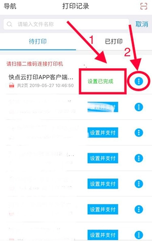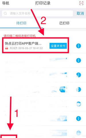 在选择对应的云打印服务后,系统会跳转至该服务的操作界面。此时界面会提示文件已成功上传,接下来需要找到并点击“打印记录”选项,在其中可以查看刚刚上传完成的文件。之后依次点击“设置并支付”按钮,完成相关配置后再点击“确认并支付”按钮即可。