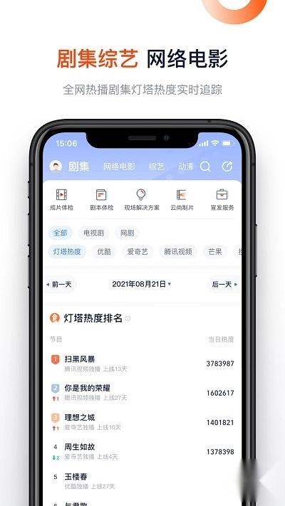 影视内容数据追踪:涵盖剧集、网络剧、综艺节目与动画作品的播放热度及收视数据,提供每日动态更新,助力实时把握受众在不同屏幕间的内容偏好走向。