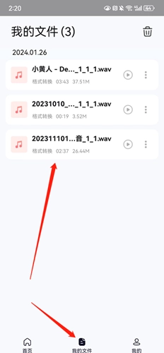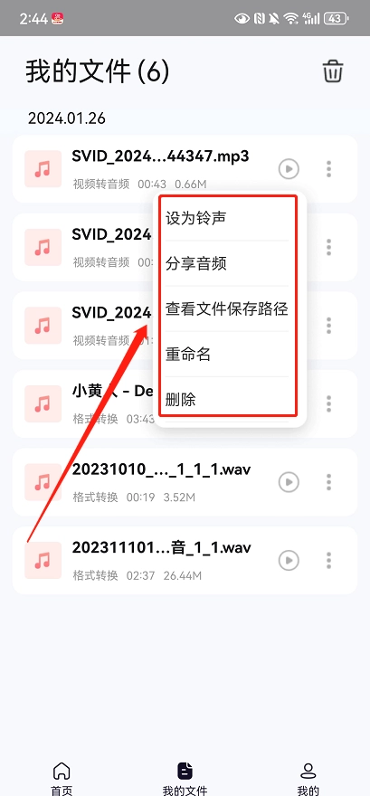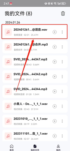 在“我的文件”里能找到刚处理完毕的文件,点击右侧的按钮就能修改文件名或者使用音频功能。