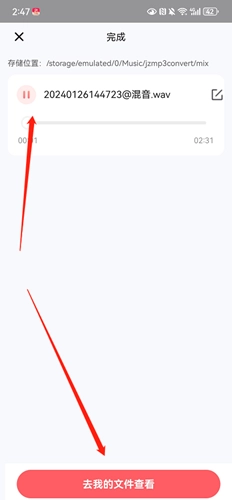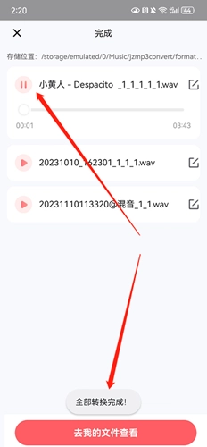 请稍候,待转换操作结束后,您可以先点击试听按钮体验效果,之后再到文件存储的地方进行查看。