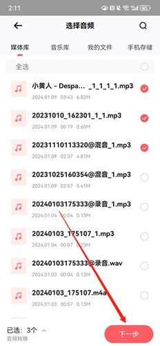 依据实际需求,勾选想要进行格式转换的音频文件后,点击界面上的“下一步”按钮即可推进流程。