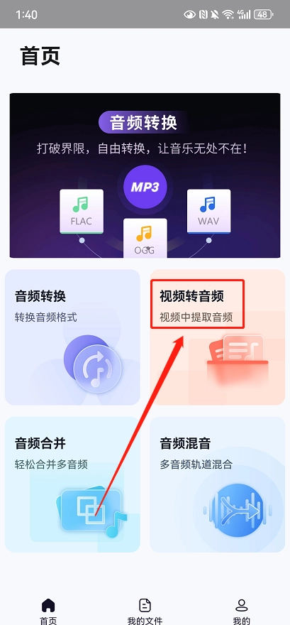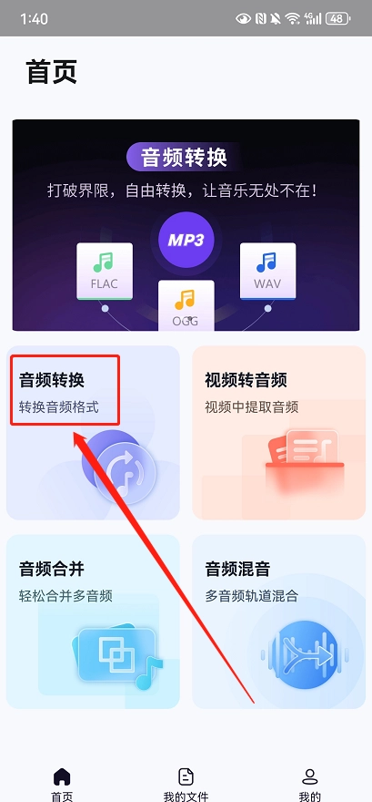 打开App首页,就能看到多样的功能选项,可充分满足您对手机音频转换的各类需求。