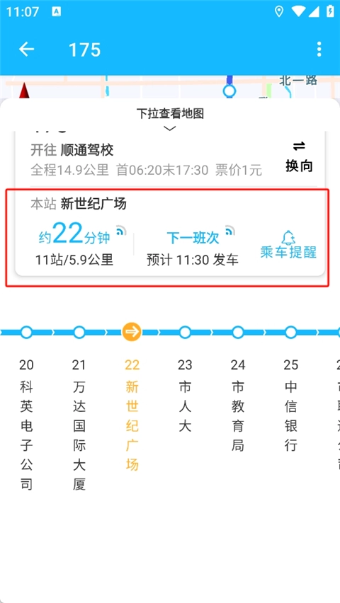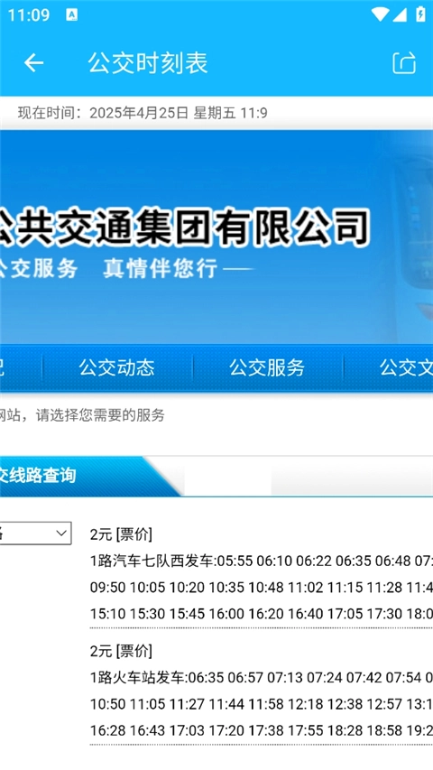 然后就可以看到该线路的公交发车时间。