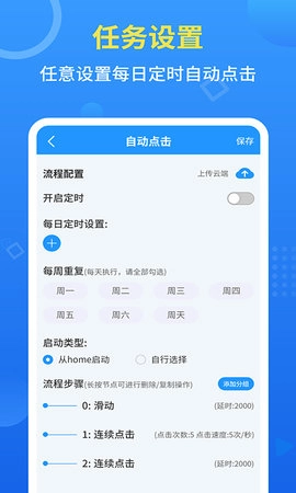 手机自动点击器是一款辅助工具,用户可借助它模拟点击、滑动等操作,以此替代双手完成重复动作。例如在社交软件里,您能用它自动发送消息;在各类平台中,设置定时打卡、定时发短信或打电话等功能,手机自动点击器也都能出色完成。
