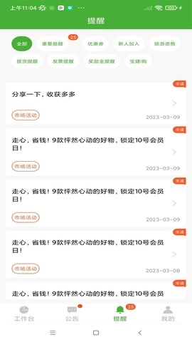 用户还能对自己的发票信息进行管理,便于报销和后续的管理工作。“提醒”板块是用户获取各类即时通知的渠道。在这里,用户可以收到新人加入的提示,知晓新成员的加入动态;也能接收到优惠券、旅游资格等相关信息的通知,第一时间了解最新的优惠活动与福利内容。这些提醒有助于用户更充分地享受i宝健所提供的福利和优惠。
