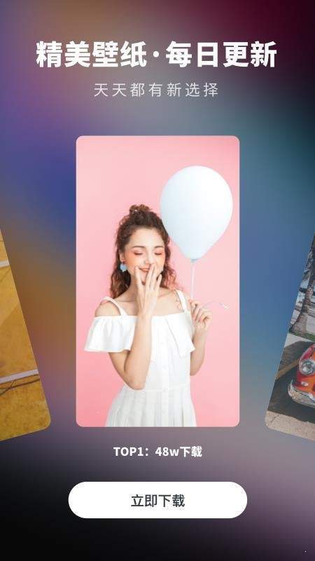 3、一键设置,自动匹配屏幕,主题壁纸,每日精选套图,在线收藏,简单更省流量。