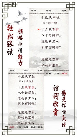 这款应用针对不同教材版本的古诗设计了系统的学习内容,与教材同步更新。它整合了古诗真人朗读、知识点解析和习题练习等功能,助力学生提升记忆与理解能力。学生能借助朗读、跟读功能规范发音习惯,强化对古诗的记忆效果。