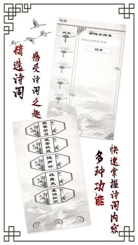 在“随身听”功能里,学生能够不受时间地点限制聆听古诗诵读,增进对古诗的理解与感悟。“基础知识”功能则可供学生知晓古诗的起源、特征及分类,从而拓展自身的知识储备。而古诗附带的译文、注释、作者介绍等详尽内容,能帮助学生更深入地把握古诗的创作背景与内涵意义。