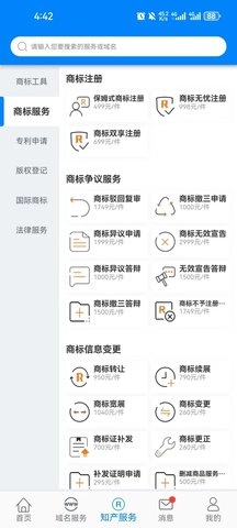 爱名网还提供知识产权方面的服务,用户可以通过软件来了解知识产权相关的法律法规、以及案例等,通过这个功能,用户可以更好地保护自己的知识产权。爱名网是一款功能丰富的政企业务应用。它集成了域名查询、域名注册、商标注册、域名抢注、知识产权等多种功能,为用户提供了便捷的服务。无论是个人还是企业,都可以通过软件来管理和保护自己的域名和商标知识产权。