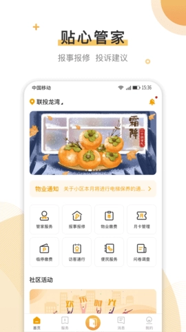 联管家除了提供物业服务外,还为社区用户组织了丰富多彩的社交活动。借助平台的社交功能,用户能够和邻居们进行交流、分享生活中的点滴经验,从而加深彼此的了解并增进友谊。这类社交互动不仅有助于增强社区的凝聚力,还能创造更多交流与合作的契机,为社区的发展开拓更多可能性。联管家始终致力于为社区用户构建全新的智能实用品质生活,不断提升社区的居住舒适度与生活便利性。