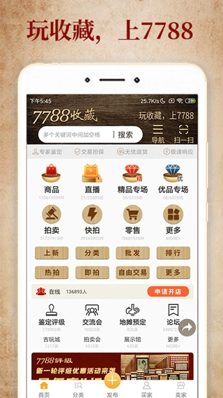7788收藏交易平台专注于古玩及各类藏品交易领域,为收藏爱好者提供藏品展示、交易与交流的全方位服务。该平台涵盖书籍、字画、邮币卡、陶瓷、玉器等丰富收藏品类,构建起专业的线上古玩交易生态体系。通过严格的藏品审核机制与多元的交易模式,7788收藏网致力于打造安全可靠的收藏品交易环境,助力用户便捷地完成藏品买卖、分享收藏心得,并拓展收藏视野。