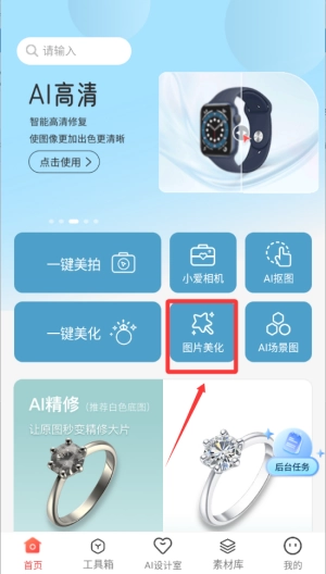2、开展智能美化操作:先运用美化功能对画面进行初步优化,再依据具体的需求,选择合适的工具开展局部修饰工作,或是进行整体调整。