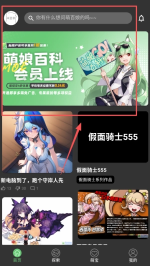 1、首先,在应用商店中搜索“萌娘百科”,并完成安装,打开应用后将看到主界面,涵盖各类二次元相关内容。