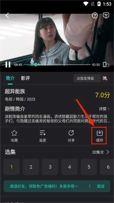 2、点击简介右下角的缓存按钮,接着选择想要缓存的集数就可以了。