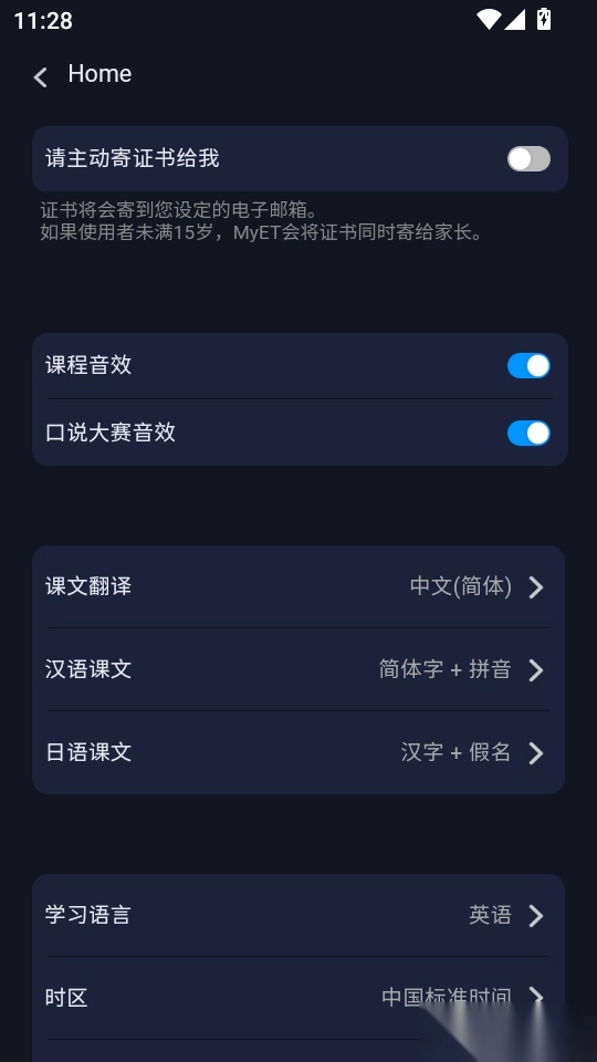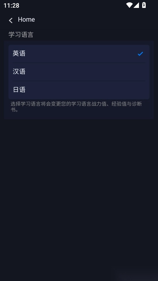 然后大家就可以自定义切换设置不同的学习语言了