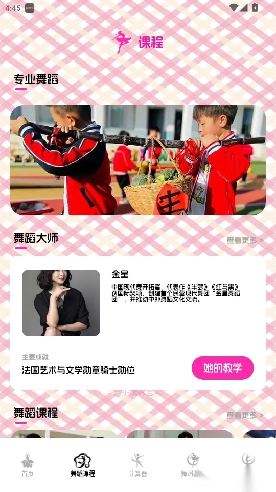 进入“舞蹈课程”页面后,点击“查看更多”按钮即可进入下一步操作。