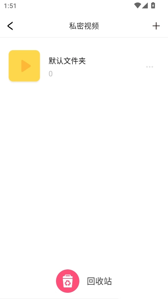 接下来进入“私密视频”的管理菜单页面,找到右上角的“+”按钮并点击进入。