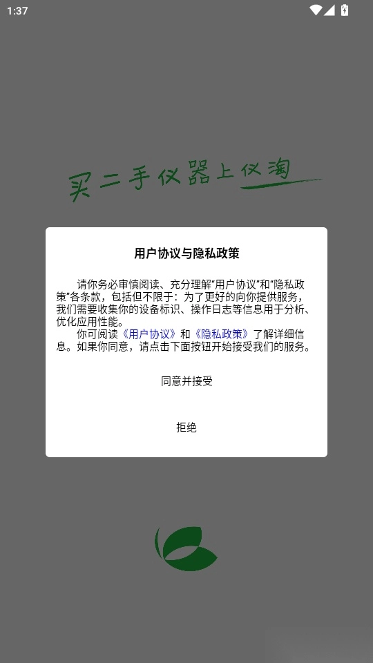 打开软件后,阅读“用户协议和隐私政策”,点击“同意并接受”按钮即可进入。