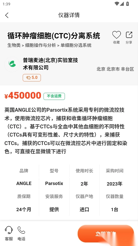 进入仪器详情页面后,点击“立即咨询”按钮,就能马上向卖家咨询关于该仪器的相关问题。