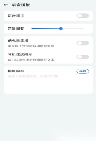最后通过滑动开关的操作,就能把“低电量播报”的按钮模式开启了