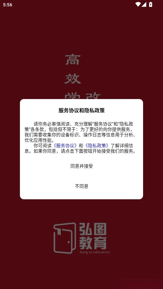 打开软件后,阅读“服务协议和隐私政策”,随后点击“同意并接受”按钮即可进入。