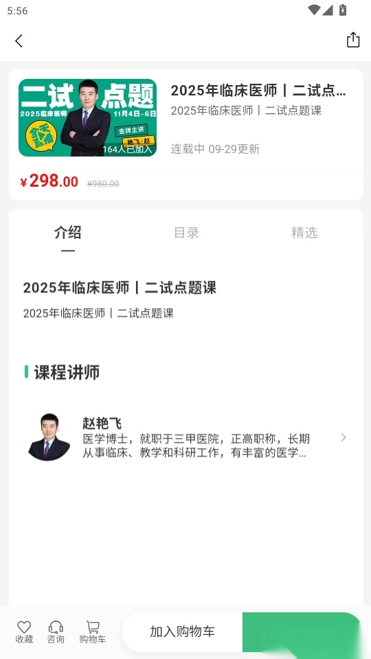 进入课程详情页面后,点击“加入购物车”按钮,就能把该课程添加到购物车进行管理。