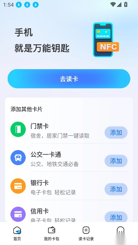 为用户提供线上读卡管理功能,支持对已读取的卡片进行管理,还能一键添加所需卡片。